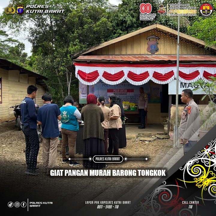 Barong Tongkok – Kapolsek Barong Tongkok IPTU Edi Subagyo memimpin pelaksanaan Giat Pangan Murah bagi masyarakat di wilayah hukum Polsek Barong Tongkok, Kamis (14/8/2025), bertempat di Pospol Linggang Bigung. Kegiatan ini merupakan wujud kepedulian Polri dalam membantu meringankan beban warga melalui penyediaan bahan kebutuhan pokok dengan harga terjangkau.