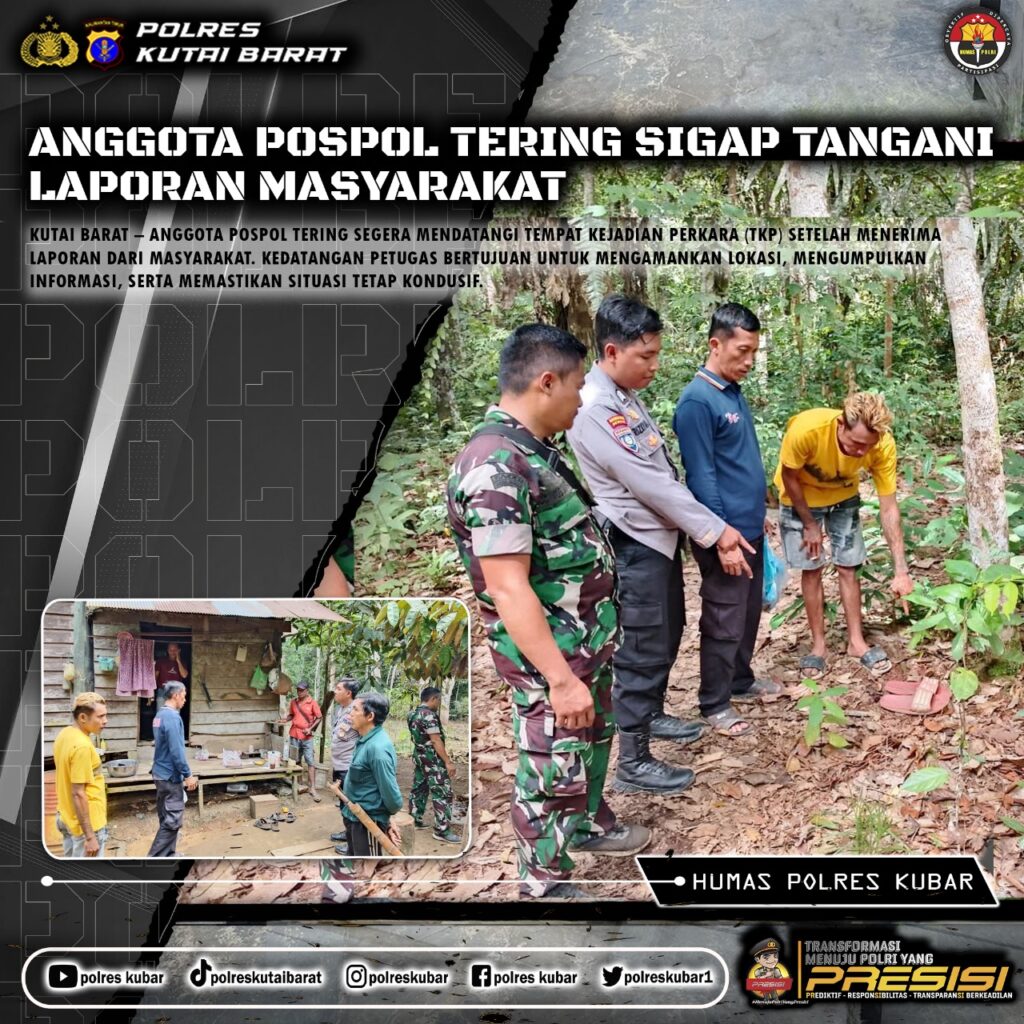 KUTAI BARAT – Anggota Pospol Tering segera mendatangi tempat kejadian perkara (TKP) setelah menerima laporan dari masyarakat. Kedatangan petugas bertujuan untuk mengamankan lokasi, mengumpulkan informasi, serta memastikan situasi tetap kondusif.