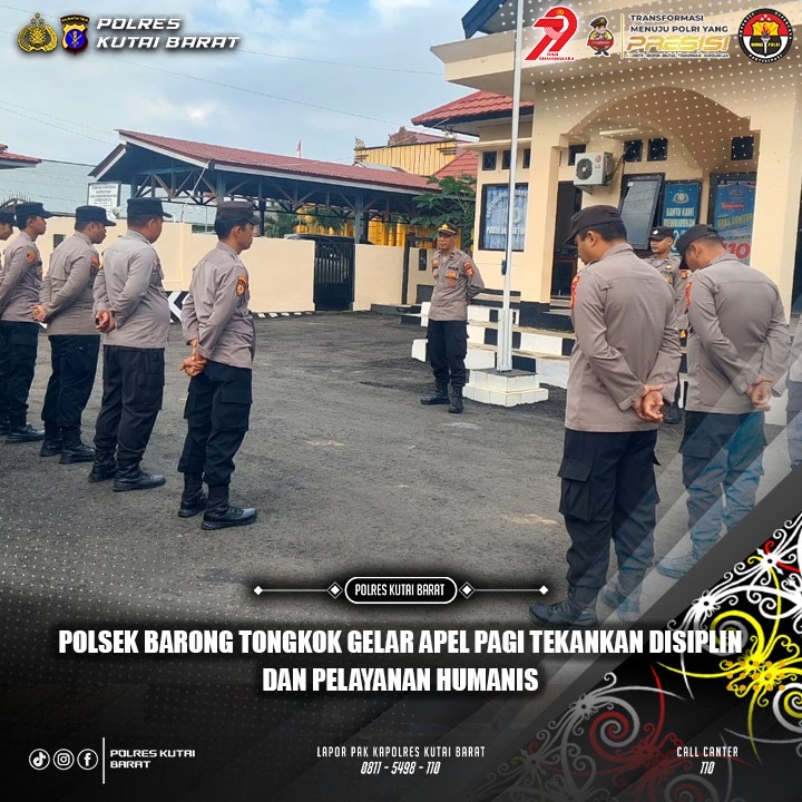 Barong Tongkok, 22 Juli 2025 – Jajaran Polsek Barong Tongkok melaksanakan apel pagi di halaman Mako Polsek pada Selasa (22/7/2025) pukul 08.00 WITA. Kegiatan ini dipimpin langsung oleh Kapolsek Barong Tongkok IPTU EDI SUBAGYO dan diikuti oleh seluruh personel.
