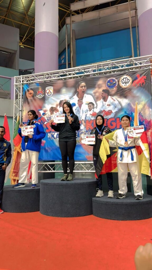 Polwan yang akrab disapa Jeje ini meraih medali kelas Kumite Perorangan Senior Putri 68 Kg. Jeje adalah salah satu kontingen Indonesia yang diberangkatkan bersama Tim Inkanas Polda Riau yang dipimpin Ketua Majelis Sabuk Hitam Inkanas Riau Kurniadi Syahputra.