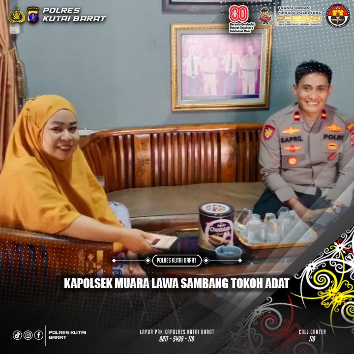 Muara Lawa – Dalam rangka mempererat silaturahmi dan menjaga sinergitas dengan tokoh adat, Kapolsek Muara Lawa IPDA Sapril, S.H. melaksanakan sambang ke kediaman Kepala Adat Kecamatan Muara Lawa, Ibu Nurhasanah, pada Jumat (12/09/2025).