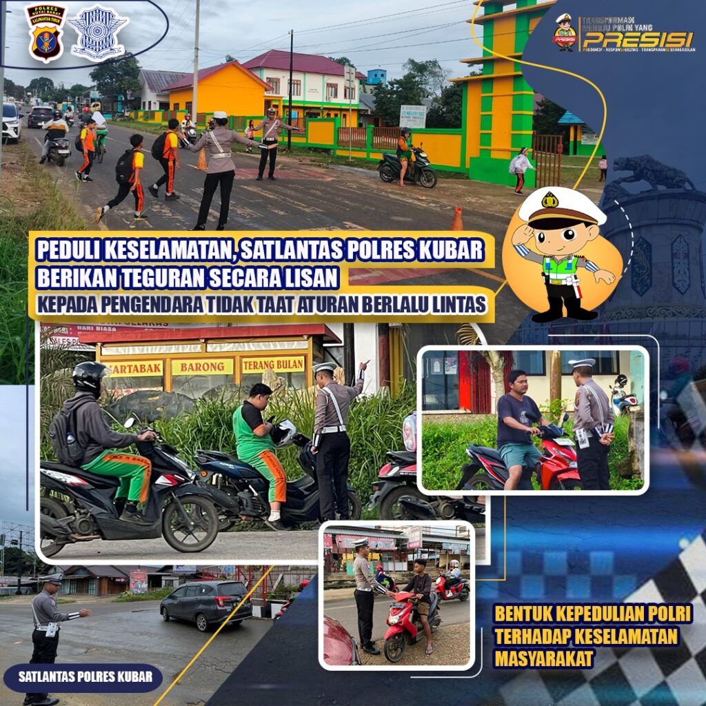 “Teguran secara lisan anggota satlantas polres Kubar terhadap masyarakat yang tidak memenuhi standar berkendara ini sebagai bentuk kepedulian Polri terhadap keselamatan masyarakat, karena memperhatikan keselamatan diri sendiri itu penting apalagi keselamatan orang lain,” ucap Kasat Lantas.