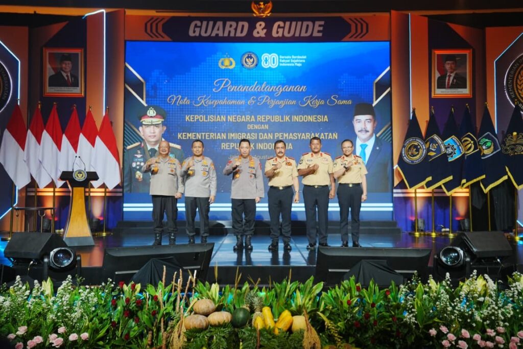 Jakarta. Kapolri Jenderal Polisi Drs. Listyo Sigit Prabowo bersama Menteri Imigrasi dan Pemasyarakatan Agus Andrianto melakukan penandatanganan MoU sebagai bentuk memperkuat sinergitas dalam penegakan hukum. MoU ini merupakan perpanjangan, di mana dari nota kesepahaman sebelumnya, kali ini terdapat poin tambahan.