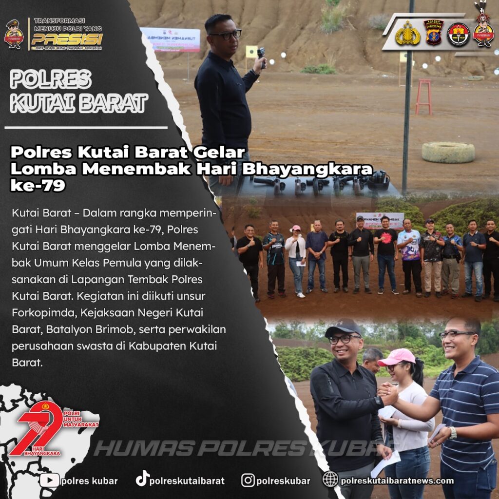 Kutai Barat – Dalam rangka memperingati Hari Bhayangkara ke-79, Polres Kutai Barat menggelar Lomba Menembak Umum Kelas Pemula yang dilaksanakan di Lapangan Tembak Polres Kutai Barat. Kegiatan ini diikuti unsur Forkopimda, Kejaksaan Negeri Kutai Barat, Batalyon Brimob, serta perwakilan perusahaan swasta di Kabupaten Kutai Barat.