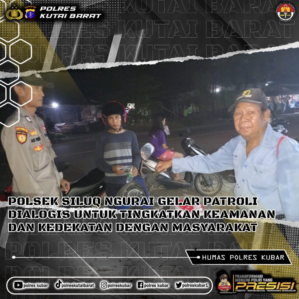 Kapolsek Siluq Ngurai, IPDA Ginanjar Wahyu Utomo, S.H., M.H., menegaskan bahwa patroli dialogis merupakan langkah strategis dalam membangun hubungan yang harmonis antara kepolisian dan masyarakat. “Kami berharap dengan adanya patroli ini, masyarakat merasa lebih aman dan nyaman dalam beraktivitas, serta semakin percaya terhadap peran kepolisian dalam menjaga keamanan,” ujarnya.