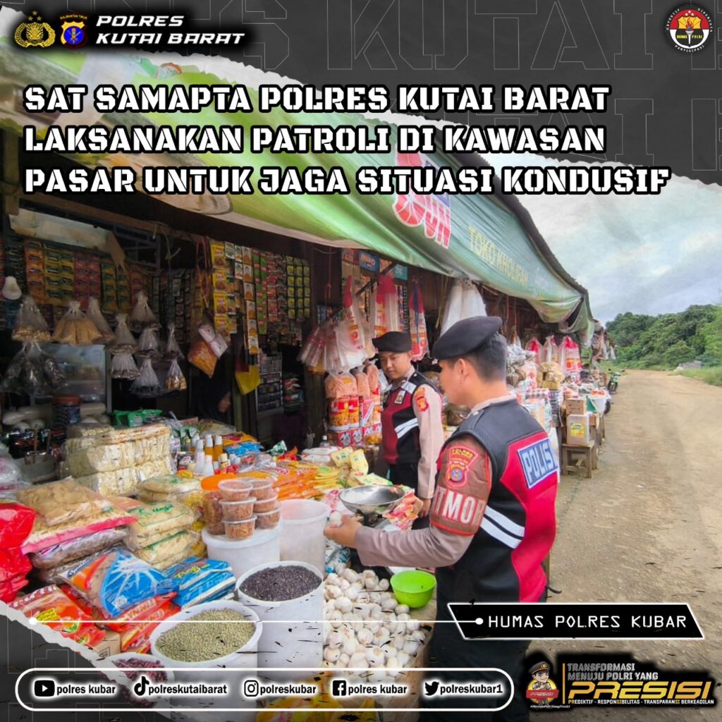Barong Tongkok – Dalam rangka cooling system, anggota Sat Samapta Polres Kutai Barat rutin melaksanakan patroli untuk mempererat komunikasi antara Polri dan masyarakat, serta memastikan situasi keamanan dan ketertiban masyarakat (kamtibmas) tetap kondusif. Patroli kali ini dilaksanakan di kawasan Pasar Barong Tongkok, Kabupaten Kutai Barat, pada Senin (16/12/2024).