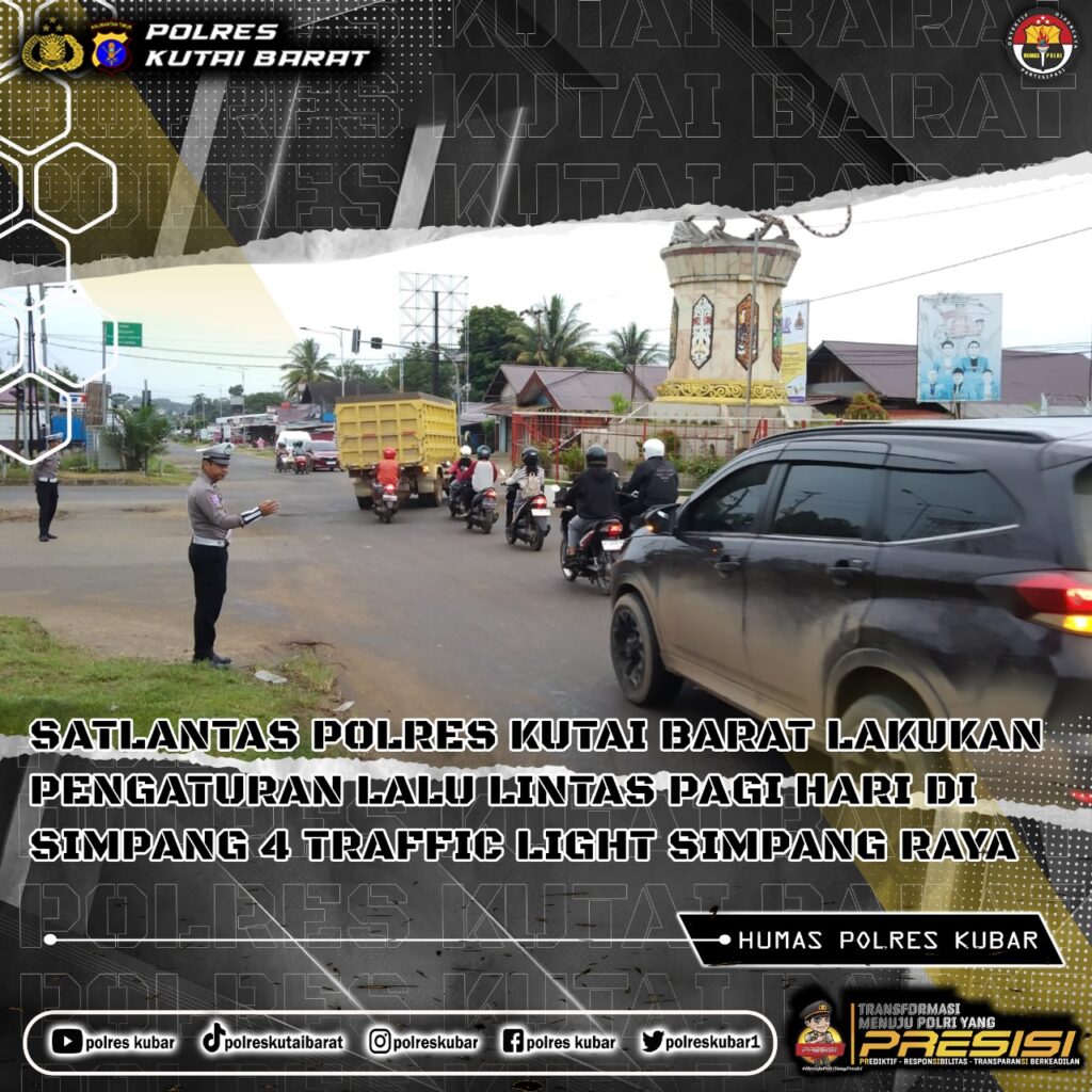 Kutai Barat, 13 Desember 2024 – Satuan Lalu Lintas (Satlantas) Polres Kutai Barat melaksanakan pengaturan lalu lintas pagi hari di simpang empat Traffic Light Simpang Raya, Jumat (13/12). Kegiatan ini bertujuan memastikan kelancaran arus lalu lintas di kawasan padat kendaraan, terutama pada jam sibuk pagi hari.
